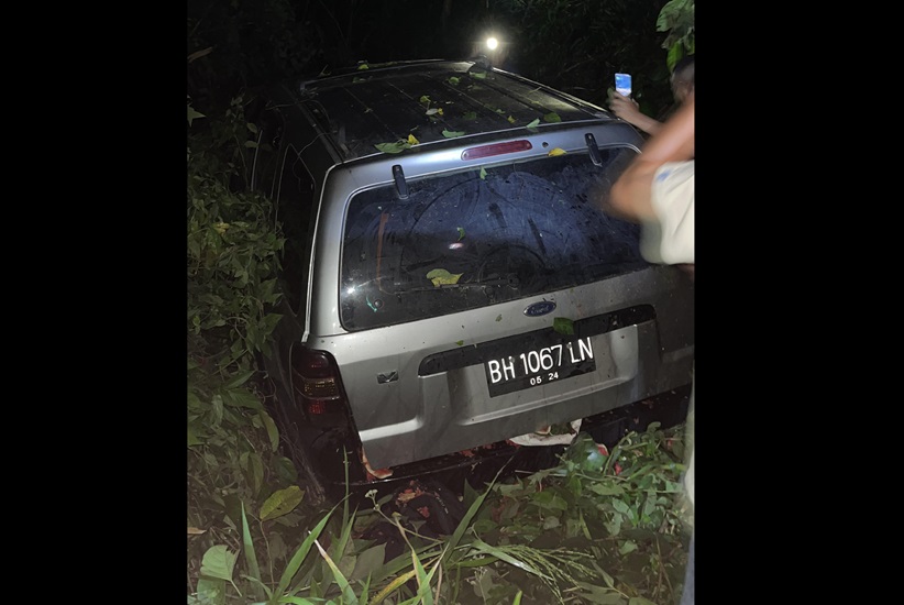 Mobil Ford dengan nomor polisi BH 1067 LN tersebut dikemudikan oleh Indra, warga Lantak Seribu, Renah Pemenang, Kabupaten Merangin. Bersama Indra, ada dua penumpang lain di dalam mobil tersebut.