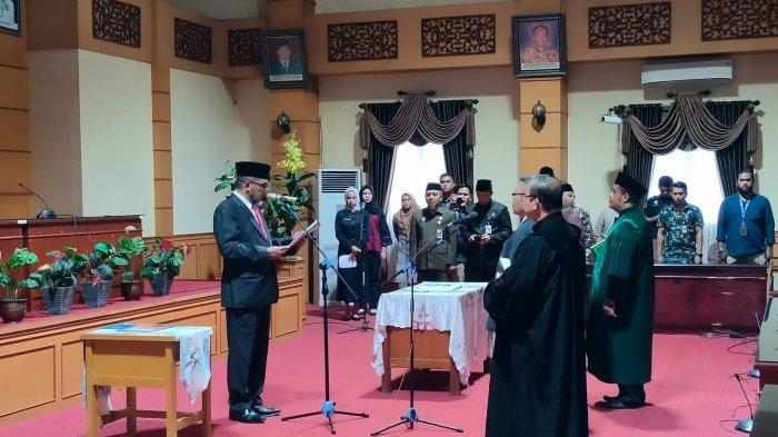 Prosesi pelantikan dan pengambilan sumpah jabatan dipimpin Sekretaris Daerah (Sekda) Provinsi Jambi Sudirman, di Aula Kantor Dinas Pendidikan Provinsi Jambi.