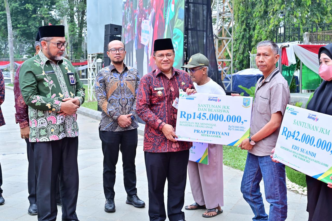 Dilangsungkan di lapangan utama Kantor Wali Kota Jambi, sebanyak 3.000 pekerja rentan terverifikasi menerima fasilitasi Jamsostek yang terdiri dari UMKM, ojek online dan tukang bangunan. Tidak sampai disitu Pemkot juga memfasilitasi Jamsostek kepada 1.316 petugas keagamaan yang tidak memiliki penghasilan tetap.