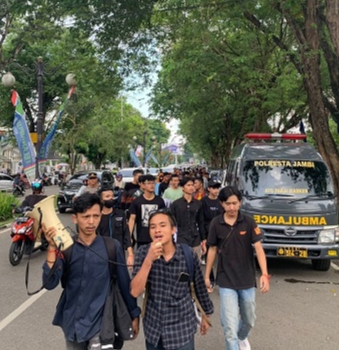 Aksi damai yang melibatkan puluhan mahasiswa itu, dimulai dengan melakukan orasi di Simpang BI, Kecamatan Telanaipura, Kota Jambi, dan dilanjutkan orasi di depan gedung Kejati Provinsi Jambi.