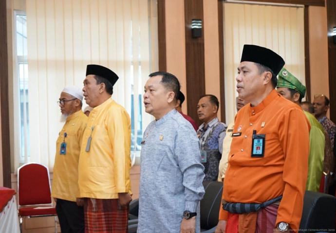 Apel pagi ini dihadiri oleh seluruh pegawai Kanwil Kemenkum Jambi, termasuk jajaran Kanwil Kementerian Imigrasi dan Pemasyarakatan.