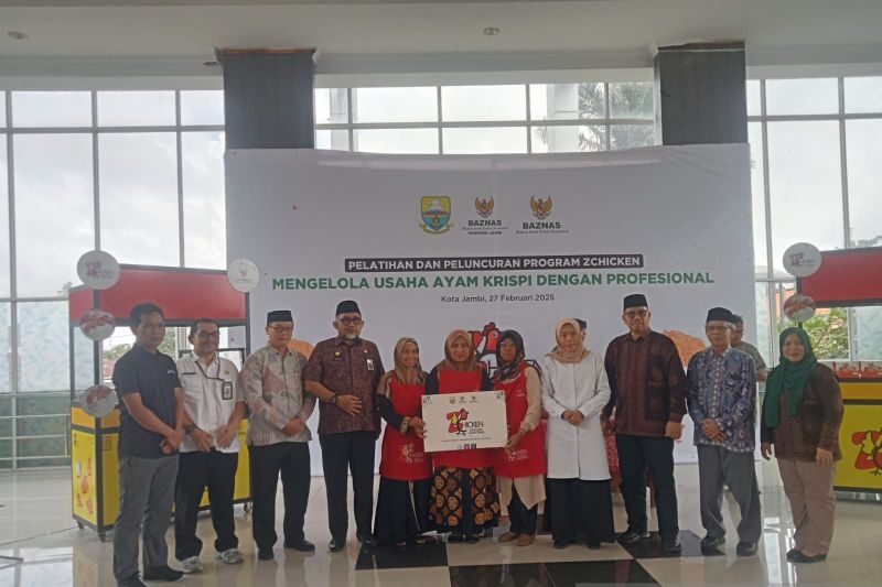 SEKATOJAMBI.COM, JAMBI – Badan Amil Zakat Nasional (Baznas) Provinsi Jambi menyerahkan bantuan berupa 60 outlet (tempat usaha) kepada para mustahiq (orang yang berhak menerima zakat) dan pelatihan program ‘zchicken’ mengelola usaha ayam krispi dengan profesional, Kamis (27/2/2025).