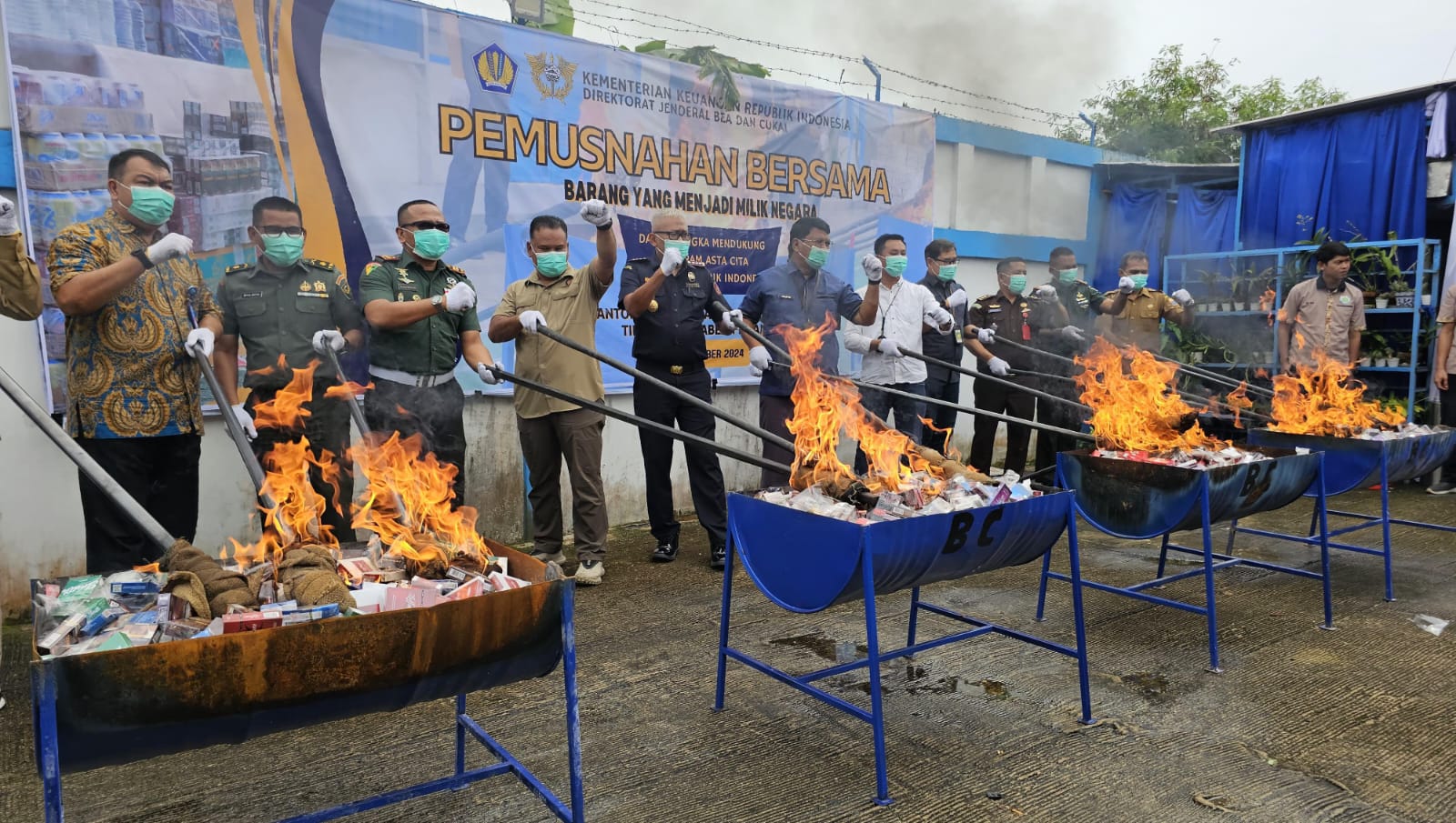 Sedangkan pemusnahan barang milik negara hasil penindakan hari ini telah mendapatkan persetujuan dari pihak terkait, terdiri dari 2.853.268 batang rokok ilegal dan 403,15 liter MMEA ilegal dengan total potensi kerugian negara sejumlah Rp 2.243.396.458.