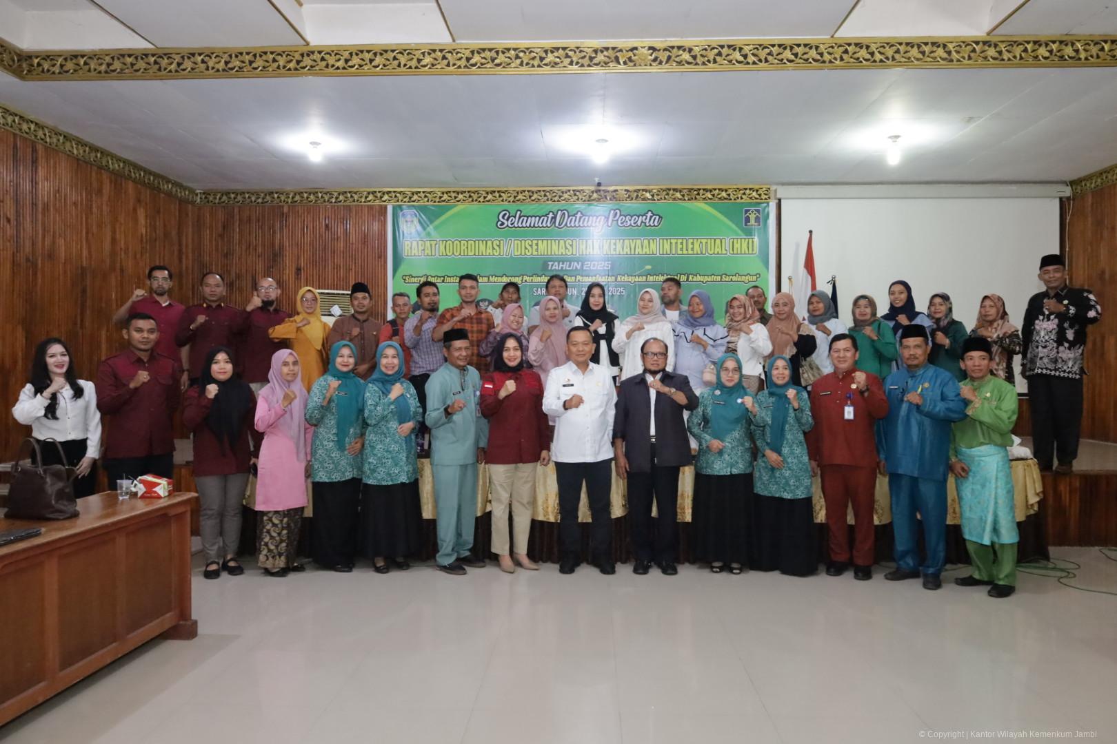 SEKATOJAMBI.COM, SAROLANGUN – Kantor Wilayah Kementerian Hukum Jambi menggelar kegiatan Diseminasi Kekayaan Intelektual (KI) dengan tema “Sinergi Antar Instansi dalam Mendorong Perlindungan dan Pemanfaatan Kekayaan Intelektual” di Kabupaten Sarolangun sebagai langkah awal dalam membangun ekosistem pelindungan dan pemanfaatan KI berbasis potensi lokal, bertempat di Aula Kantor Bappeda Kabupaten Sarolangun, Rabu (25/6/2025).