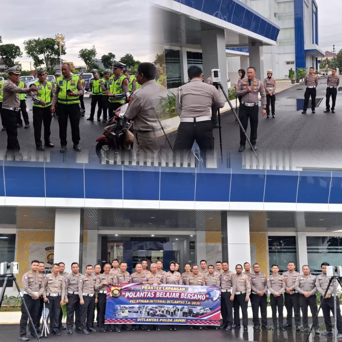 SEKATOJAMBI.COM, JAMBI – Saat sebagian kota masih menggeliat dari tidur, ratusan personel Direktorat Lalu Lintas Polda Jambi sudah berdiri sigap di Lapangan Apel, Kamis (9/4/2026). Tepat pukul 06.30 WIB, usai apel pagi, mereka tidak langsung beranjak ke rutinitas, melainkan masuk ke sesi praktik lapangan program “Polantas Belajar Bersamo” — sebuah inisiatif yang kini menjadi tulang punggung peningkatan kompetensi internal.