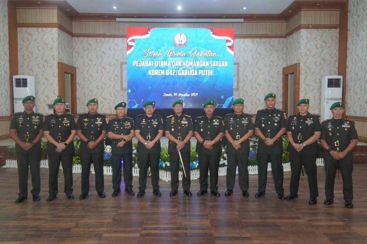 SEKATOJAMBI.COM, JAMBI – Korem 042/Gapu menggelar acara Serah Terima Jabatan (Sertijab) Pejabat Utama dan Komandan Satuan di lingkungan Korem 042/Gapu, berlangsung khidmat dengan penuh suasana kebersamaan dan semangat pengabdian, Sabtu (30/8/2025).