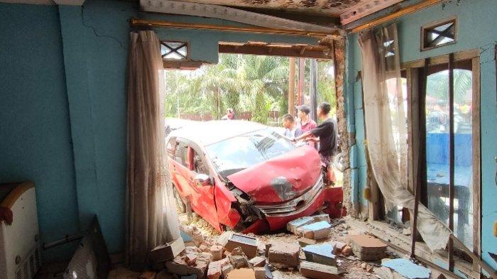 Akibatnya dinding rumah warga jebol, sedangkan bagian depan mobil bernomor polisi BG 1494 AC ini juga tampak rusak berat.