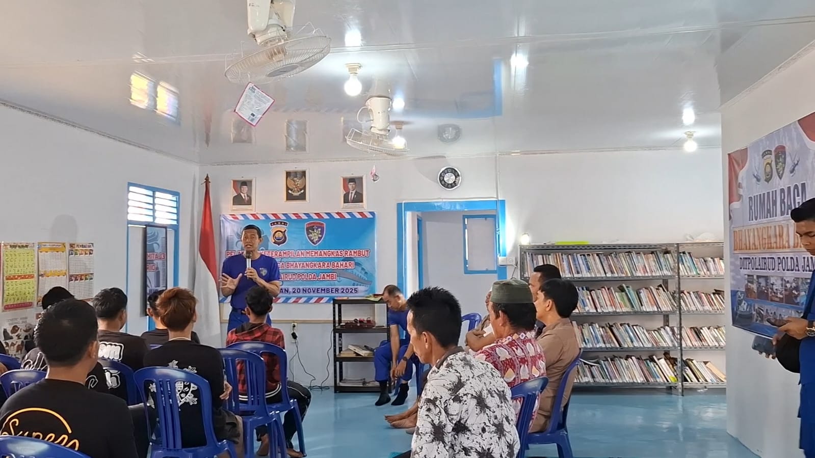 “Anggota Sie Sidik Subdit Gakkum Ditpolairud Polda Jambi Atas Perintah saya dan jajaran Dirpolairud melaksanakan Pelatihan Keterampilan Memangkas Rambut (Barber Man) bertempat di Rumah Baca Bhayangkara Bahari, Kampung Pulau Pandan,”Ujarnya Dirporair Agus Tri Waluyo.