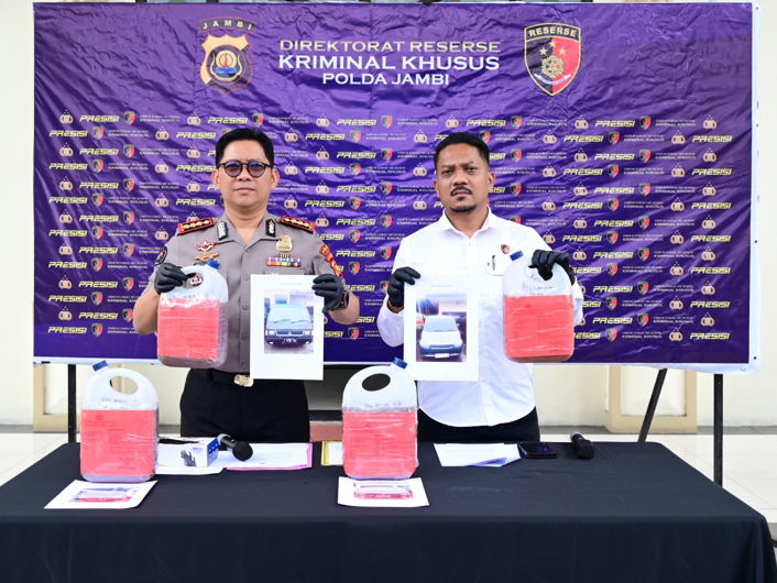 Konferensi pers tersebut dipimpin oleh Kabid Humas Polda Jambi Kombes Pol. Erlan Munaji dengan di dampingi oleh Kasubdit IV Tipidter Ditreskrimsus Polda Jambi AKBP Hadi Handoko.