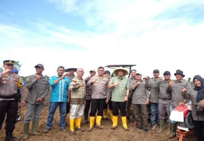 Turut hadir dalam kegiatan ini Kapolres Muaro Jambi, AKBP Heri Supriawan, Sekda Muaro Jambi Budhi Hartono, S.Sos., MT., serta sejumlah pejabat daerah, termasuk Kepala Dinas Tanaman Pangan dan Hortikultura, Kepala Dinas Perkebunan, Kepala Dinas Perikanan, dan Kepala Dinas Ketahanan Pangan. Perwakilan kelompok tani juga tampak antusias mengikuti kegiatan tersebut.