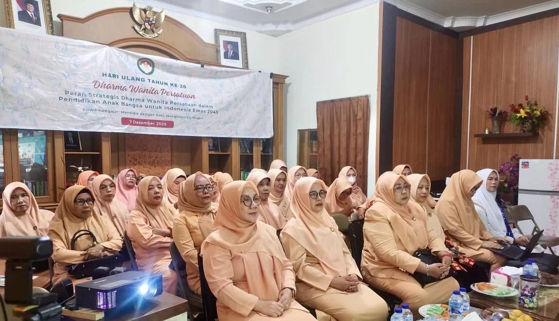 SEKATOJAMBI.COM, JAMBI – Dalam rangka puncak peringatan Hari Ulang Tahun (HUT) Dharma Wanita Persatuan (DWP) ke-26 dan Hari Ibu Tahun 2025, Ketua beserta pengurus dan anggota DWP Kantor Wilayah Kementerian Agama Provinsi Jambi mengikuti rangkaian kegiatan secara daring melalui Zoom Meeting, Rabu (17/12/2025). Kegiatan ini diikuti dari Aula Kantor Kementerian Agama Kabupaten Bungo serta Ruang Zoom Kanwil Kementerian Agama Provinsi Jambi.
