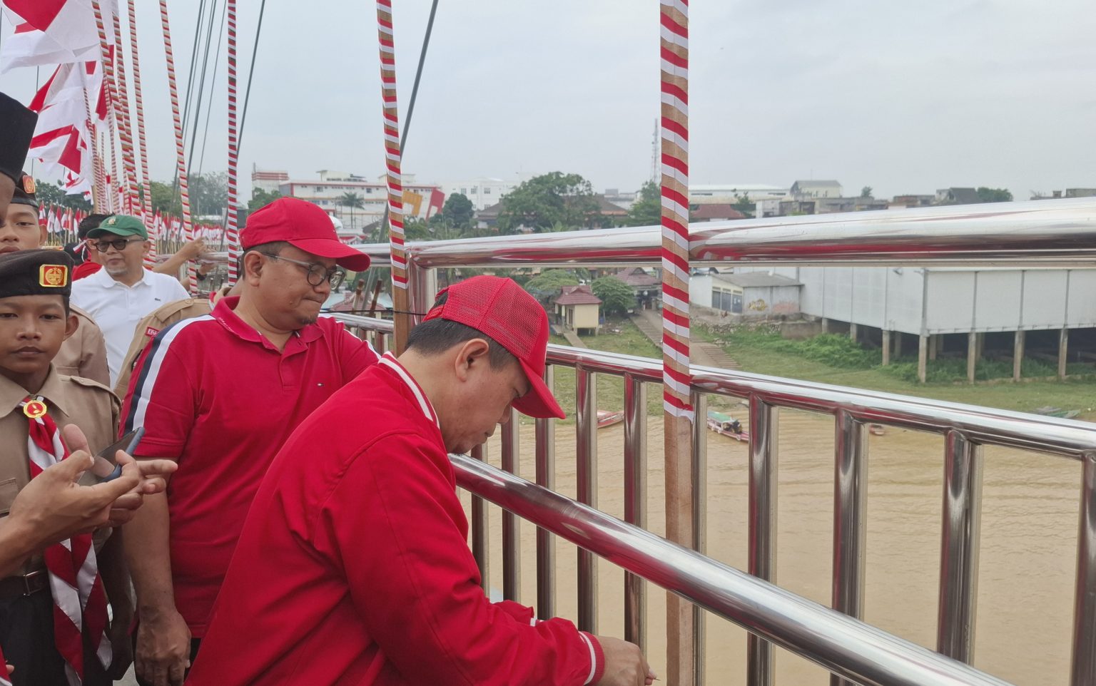 SEKATOJAMBI.COM, JAMBI – Gubernur Jambi Al Haris bersama masyarakat Jambi memimpin pemasangan 1.000 lebih Bendera Merah Putih di Jembatan Gentala Arasy, Sabtu (16/8/2025) pagi.