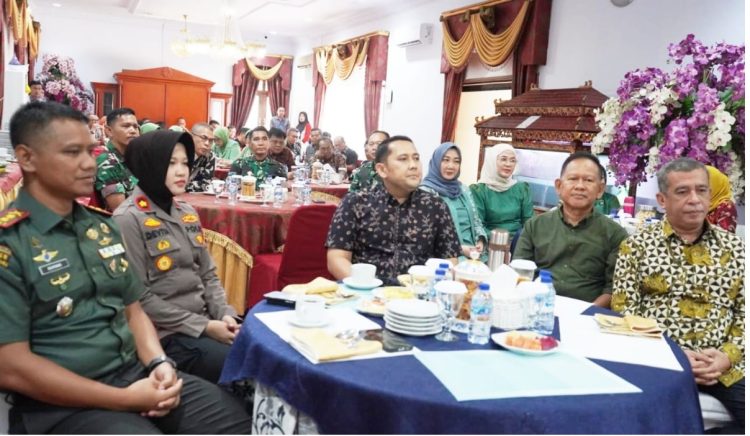 SEKATOJAMBI.COM, MERANGIN – Bupati Merangin H M Syukur bersama Ketua TP PKK Merangin Hj Lavita Syukur, menggelar acara Silaturahmi pelepasan Komandan Kodim 0420/Sarko Letkol Inf Suyono yang pindah tugas ke Pusat, di Ruang tengah rumah dinas bupati, Jumat (29/8).