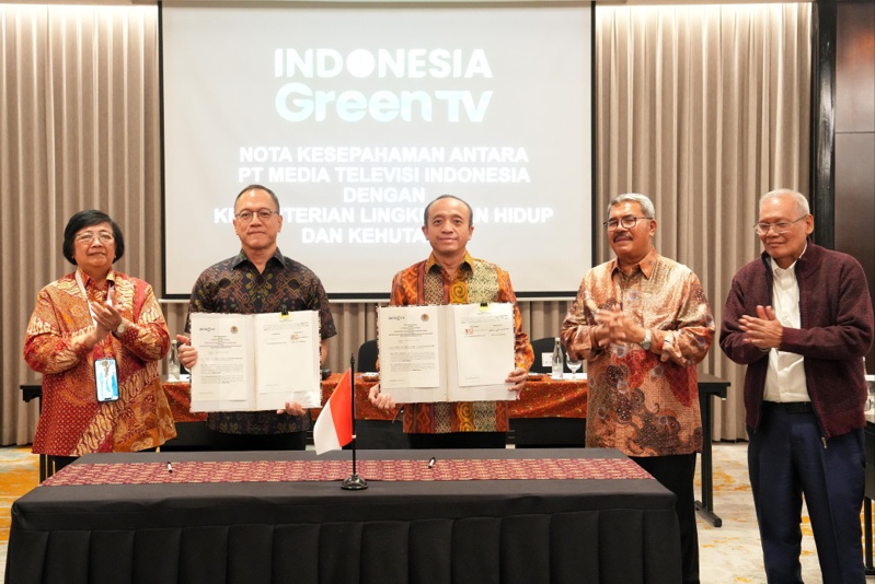 SEKATOJAMBI.COM, JAKARTA – Kementerian Lingkungan Hidup dan Kehutanan (KLHK) bersama PT Media Televisi Indonesia secara resmi menandatangani Nota Kesepahaman (MoU) tentang Pengembangan Media Publikasi Pembangunan Lingkungan Hidup dan Kehutanan Berkelanjutan, di Jakarta pada Kamis (4/7/2024). Penandatanganan dilakukan oleh Sekretaris Jenderal KLHK Bambang Hendroyono dan Plt. Direktur Utama PT Media Televisi Indonesia, Moh. Arief S. Suditomo, disaksikan oleh Menteri LHK Siti Nurbaya.