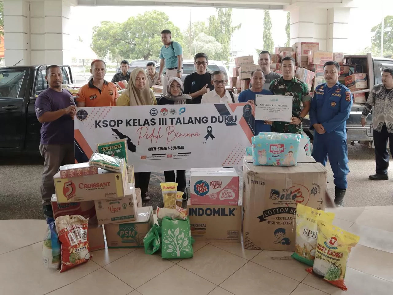 Penyerahan bantuan dilakukan secara langsung di Posko Bencana BPBD Provinsi Jambi, Jalan Soekarno-Hatta, Talang Bakung, Kecamatan Jambi Selatan. Dari KSOP Kelas III Talang Duku, bantuan diwakili oleh Poniman selaku Kasi Status Hukum dan Sertifikasi Kapal. Sementara dari Pelindo Jambi, penyerahan dilakukan oleh Junior Manager SDM, Umum, dan KBL, Erwin. Keduanya menyerahkan bantuan tersebut kepada Fitriani, Kasi Logistik BPBD Provinsi Jambi, sebagai pihak penerima resmi sebelum didistribusikan ke wilayah terdampak.