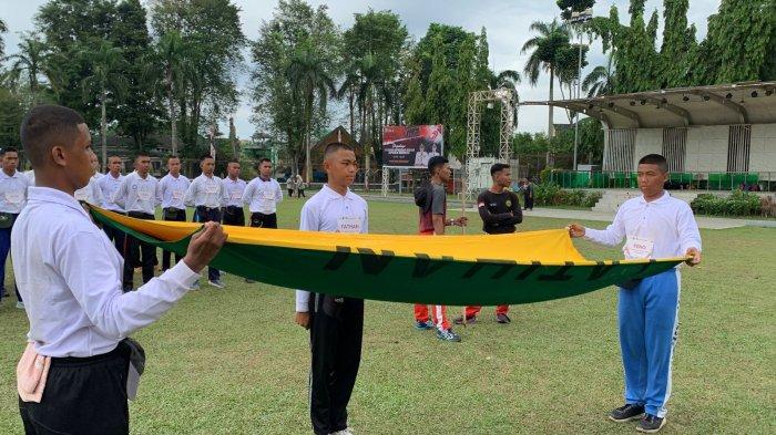 Para calon putra saat ini latihan melipat dan mengibarkan bendera, sedangkan para calon putri latihan membawa baki.