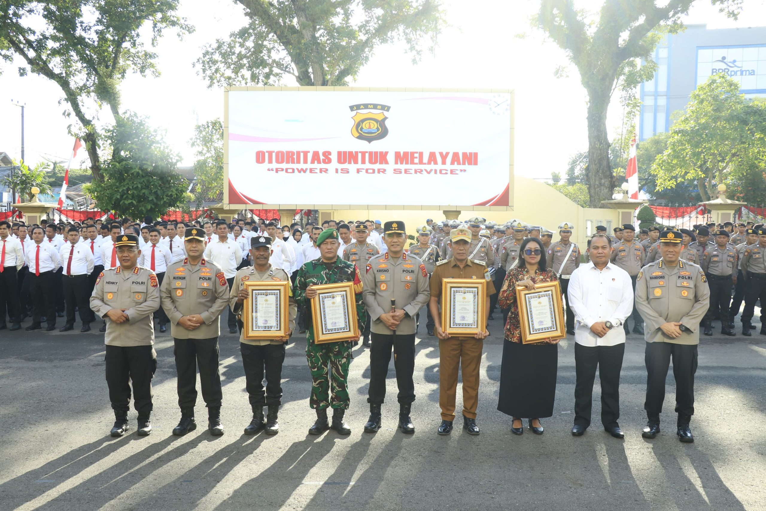 Dalam kesempatan tersebut, Kapolda sekaligus memberikan penghargaan kepada sejumlah pihak yang dinilai berjasa dalam keberhasilan pelaksanaan Program Kampung Anti Narkoba di Kelurahan Rawasari, Kecamatan Alam Barajo, Kota Jambi.