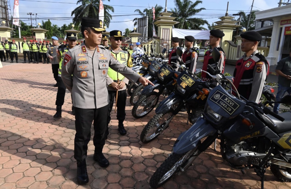 Dalam inspeksi tersebut, Irjen Rusdi didampingi sejumlah pejabat utama langsung memeriksa berbagai peralatan pengamanan serta kesiapan ratusan personel yang berdiri rapi di halaman Polres Batanghari.