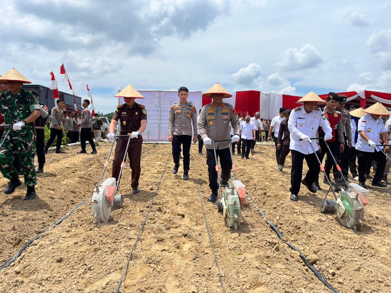 Sekira pukul 11.10 WIB melaksanakan Penanaman Jagung serentak Kuartal IV secara simbolis oleh Kapolda Jambi didampingi Forkopimda beserta tamu undangan.