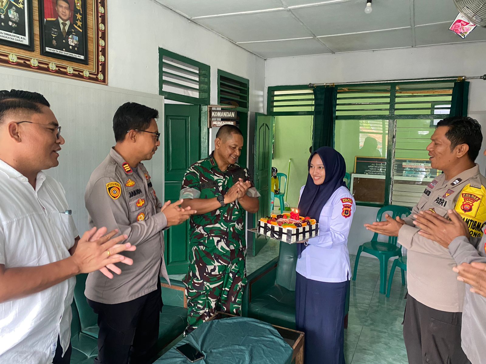 Kedatangan rombongan Polsek disambut hangat oleh Danramil 415-13 Sebapo, Kapten Inf Abdul Rauf, beserta Anggota Koramil.