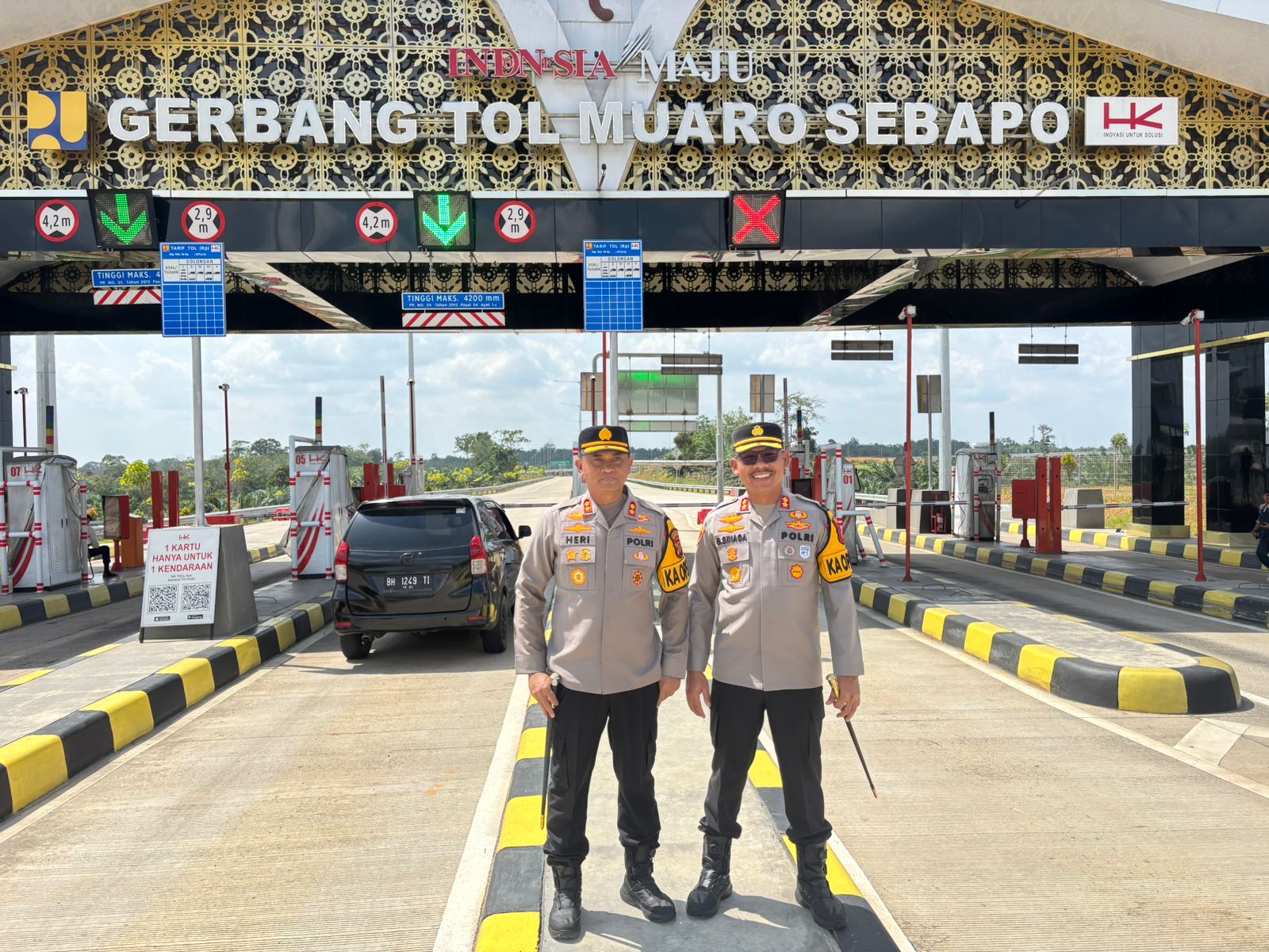 SEKATOJAMBI.COM, MUARO JAMBI – Dalam rangka Operasi Lilin Tahun 2025, Kapolres Muaro Jambi AKBP Heri Supriawan SIK MH melaksanakan kegiatan pengecekan Pos Pengamanan (Pos Pam) Natal dan Tahun Baru (Nataru) 2025-2026 di Pos Pam Exit Tol Ma. Sebapo, Kecamatan Mestong, Kabupaten Muaro Jambi Selasa 23 Desember 2025 sekira pukul 10.56 wib telah dilaksanakan pengecekan POS YAN Exit Tol Muaro Sebapo Kec.Mestong Kab.Muaro Jambi oleh rombongan Kapolres Ma.Jambi AKBP Heri Supriawan, S.I.K., M.H. didamping Kapolres Muba AKBP God Pariasro Sinaga.S.H., S.I.K., M.H.dan Ny. lilis God Sinaga.
