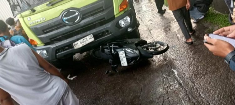 Kecelakaan ini melibatkan mobil tangki CPO bernopol BH 8603 WN dan sepeda motor Honda Beat dengan nomor polisi BH 3339 IP.