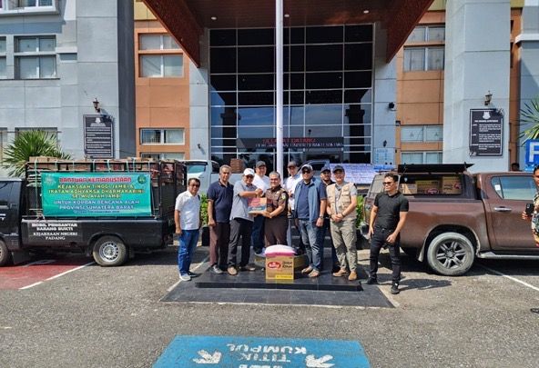 Bantuan diserahkan oleh Kepala Kejaksaan Tinggi Jambi yang diwakili Asisten Pengawasan Kejati Jambi, Novan Adrian dan diterima oleh Asisten Pembinaan Kejati Sumbar, M. Haris Hasbullah, di Posko Bencana Kejati Sumbar, Sabtu (6/12/2025).