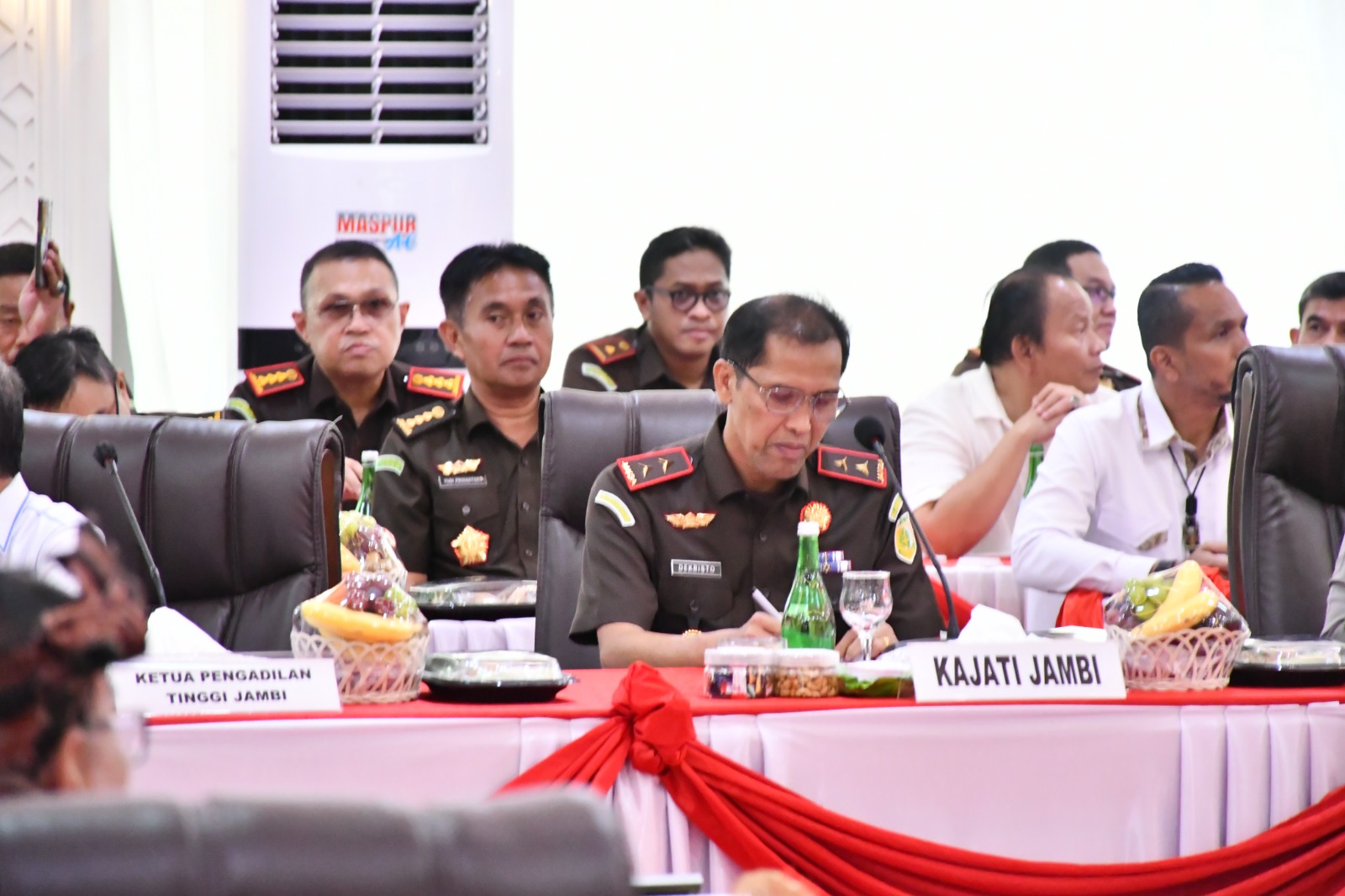 Turut hadir Kepala Kejaksaan Tinggi Jambi Dr. Hermon Dekristo,SH.,MH beserta Jajaran sewilayah Kejati Jambi, Kapolda Jambi Irjen Pol Rusdi Hartono, Kepala BNNP Jambi, Ketua Pengadilan Tinggi Jambi, Ketua Pengadilan Tinggi Agama Jambi, Ketua Pengadilan Tinggi TUN Jambi..
