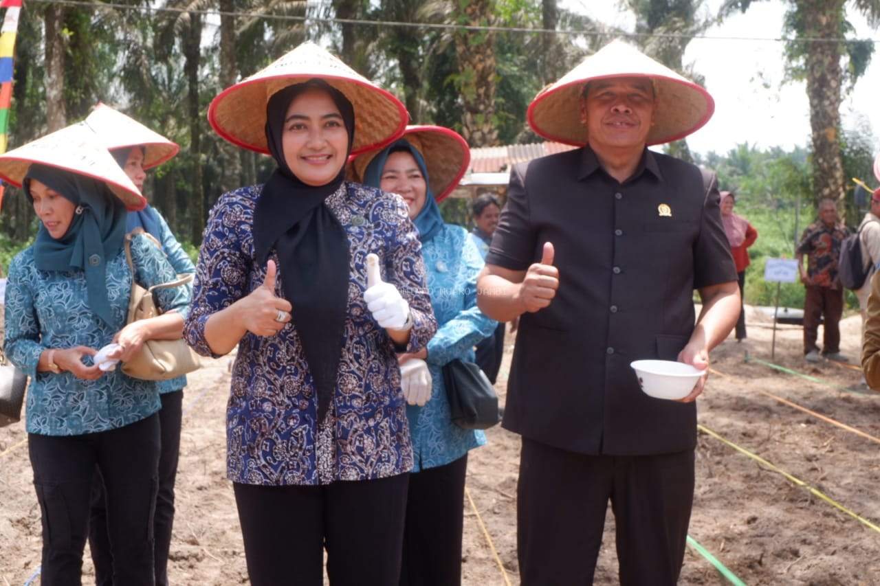 Selanjutnya diahiri dengan penanaman tanaman jagung secara simbolis oleh Ketua TP PKK Muaro Jambi, Waka Polres Muaro Jambi, sejumlah Kepala OPD terkait, serta undangan lain.