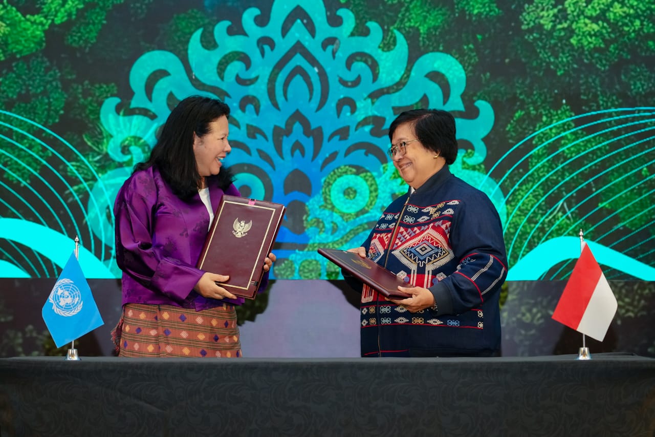 SEKATOJAMBI.COM, BALI – Kementerian Lingkungan Hidup dan Kehutanan Indonesia (KLHK) dan United Nation Environment Program (UNEP) menjalin Kerja Sama di Bidang Lingkungan Hidup dan Kehutanan. Penandatanganan Memorandum of Understanding (MoU) dilakukan oleh Menteri LHK Siti Nurbaya dan Direktur Kantor Regional UNEP untuk Asia dan Pasifik, Dechen Tsering di Bali, Rabu (9/10/2024).