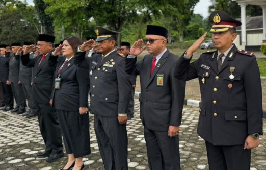 Upacara berlangsung khidmat dipimpin langsung oleh Bupati Muaro Jambi, Dr. Bambang Bayu Suseno, S.P., M.M., M.Si. serta dihadiri unsur Forkopimda, antara lain Wakil Bupati Junaidi H. Mahir, Ketua PN Sengeti Tiurmaida Hotmauli Pardede, S.H., M.Kn., Sekda Budi Hartono, serta para Kepala OPD di lingkungan Pemkab Muaro Jambi.