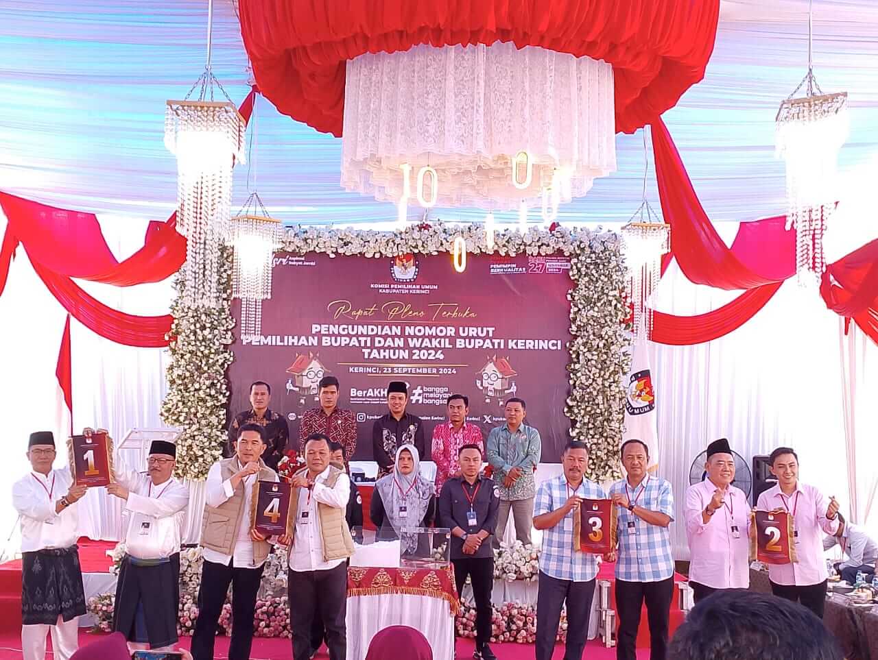 Pengundian nomor urut pasangan calon juga dihadiri oleh Forkopimda Kabupaten Kerinci terlihat hadir Pj Bupati Kerinci Kapolres, Kerinci Dandim pimpinan DPRD Kerinci, ketua Pengadilan Negeri (PN) Sungai Penuh, serta Bawaslu Kabupaten Kerinci dan para tokoh partai politik partai pengusung.