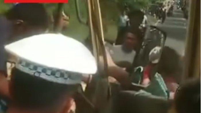 Terlihat proses evakuasi tersebut berlangsung dramatis. Hingga akhirnya sopir truk berhasil dikeluarkan dari dalam mobil.