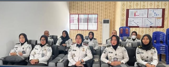 Pelaksanaan kegiatan berlangsung di ruang rapat Lapas Perempuan Kelas IIB Jambi dan diikuti oleh Kepala Lapas beserta jajaran pejabat struktural dan staf. Para peserta mengikuti kegiatan dengan penuh perhatian sebagai bentuk dukungan terhadap pelaksanaan program pembinaan dan penguatan sistem pemasyarakatan yang berkelanjutan.