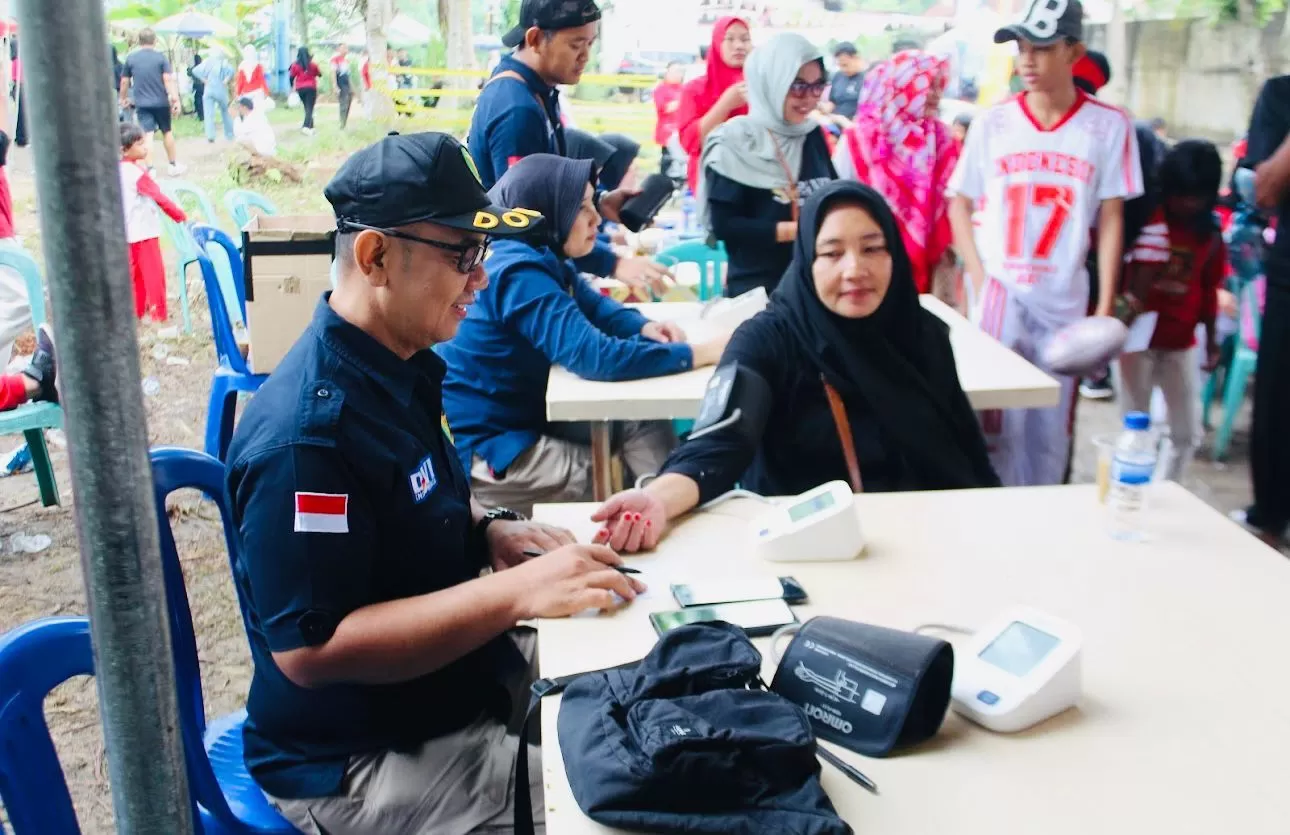 SEKATOJAMBI.COM, KOTA JAMBI – Dalam rangka memeriahkan Hari Kemerdekaan Republik Indonesia ke 80, RS Bhayangkara Polda Jambi menggelar cek kesehatan gratis kepada ratusan masyarakat Teratai Jaya RT 37 Kelurahan Bakung Kecamatan Pal Merah Kota Jambi, Minggu (24/8/2025).