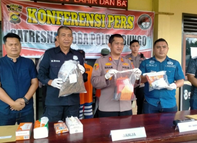 Kapolres Bungo AKBP Wahyu Bram didampingi Kasat Narkoba AKP Renovasi Hia, SIK,M menjelaskan, terkait kronologis penangkapan berawal dari informasi yang diperoleh Tim Opsnal Satres Narkoba Polres Bungo bahwa adanya bandar atau pengedar narkotika di wilayah hukum Polres Bungo .