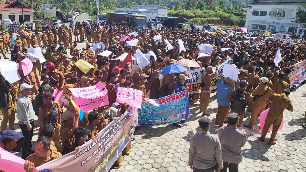 Menanggapi hal tersebut, Korlap dalam aksi tersebut menyampaikan bahwa mengapa baru mengajukan dan mau bertindak sekarang. Kenapa tidak dari dulu, sedangkan dalam Perbup sudah dinyatakan sesuai dengan PP 11 Golongan II a, tapi tidak dilaksanakan.