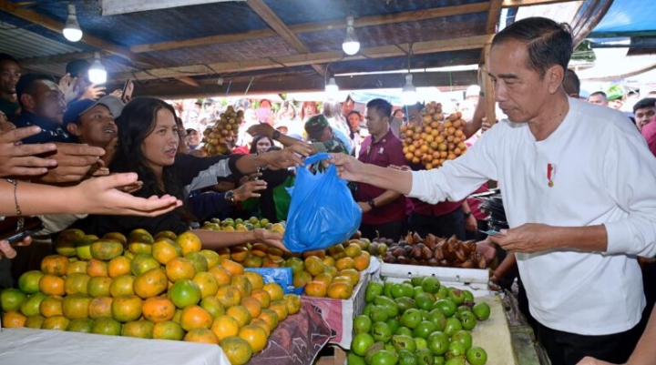 Presiden Jokowi tidak ragu untuk terjun langsung ke dalam keramaian, memilih dan membeli buah-buahan segar produksi lokal yang dijajakan para penjual setibanya di pasar tersebut. Tercatat, Presiden Jokowi membeli jeruk sebanyak lima kilogram, mangga sebanyak dua kilogram, salak sebanyak dua kilogram, dan kentang merah sebanyak dua kilogram.