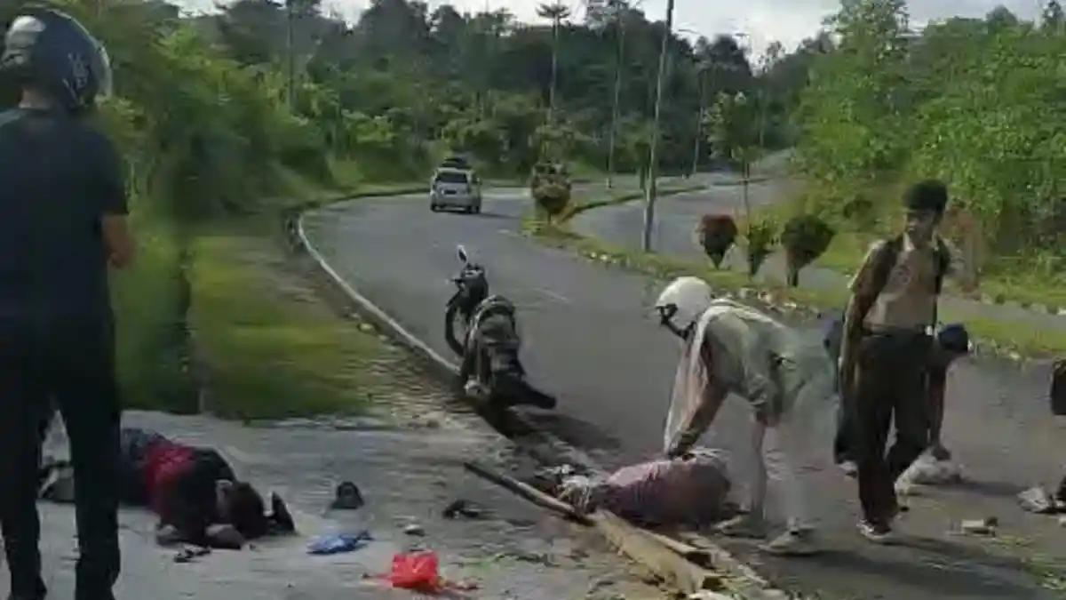 Akibat kecelakaan itu, dua orang perempuan terkapar, satu di antaranya mengalami luka serius.