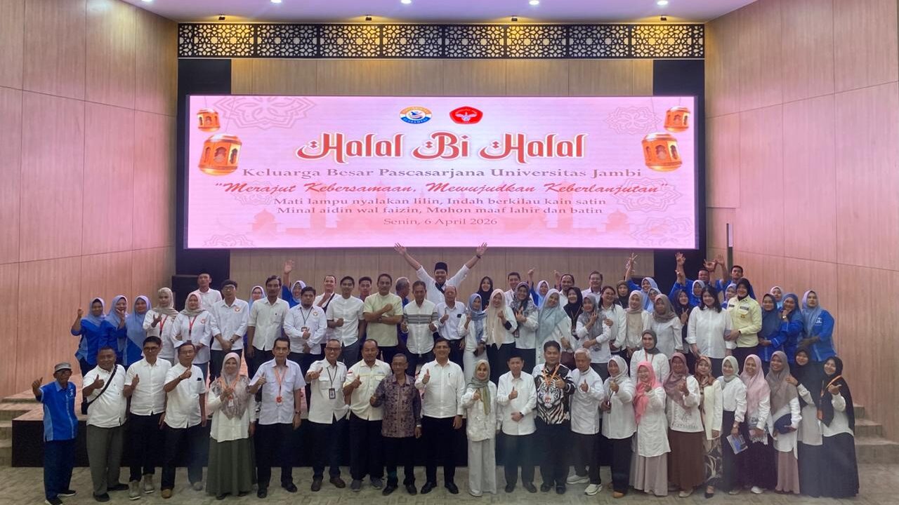 SEKATOJAMBI.COM, JAMBI – Keluarga Besar Pascasarjana Universitas Jambi (UNJA) menggelar Halal Bihalal bertema “Merajut Kebersamaan, Mewujudkan Keberlanjutan” sebagai upaya mempererat hubungan sosial dan memupuk rasa persaudaraan. Kegiatan ini juga menjadi sarana untuk memperkuat integrasi dan semangat kebersamaan antar unit kerja di lingkungan Pascasarjana UNJA. Kegiatan berlangsung di Auditorium Graha Singedekane pada (06/04/2026).