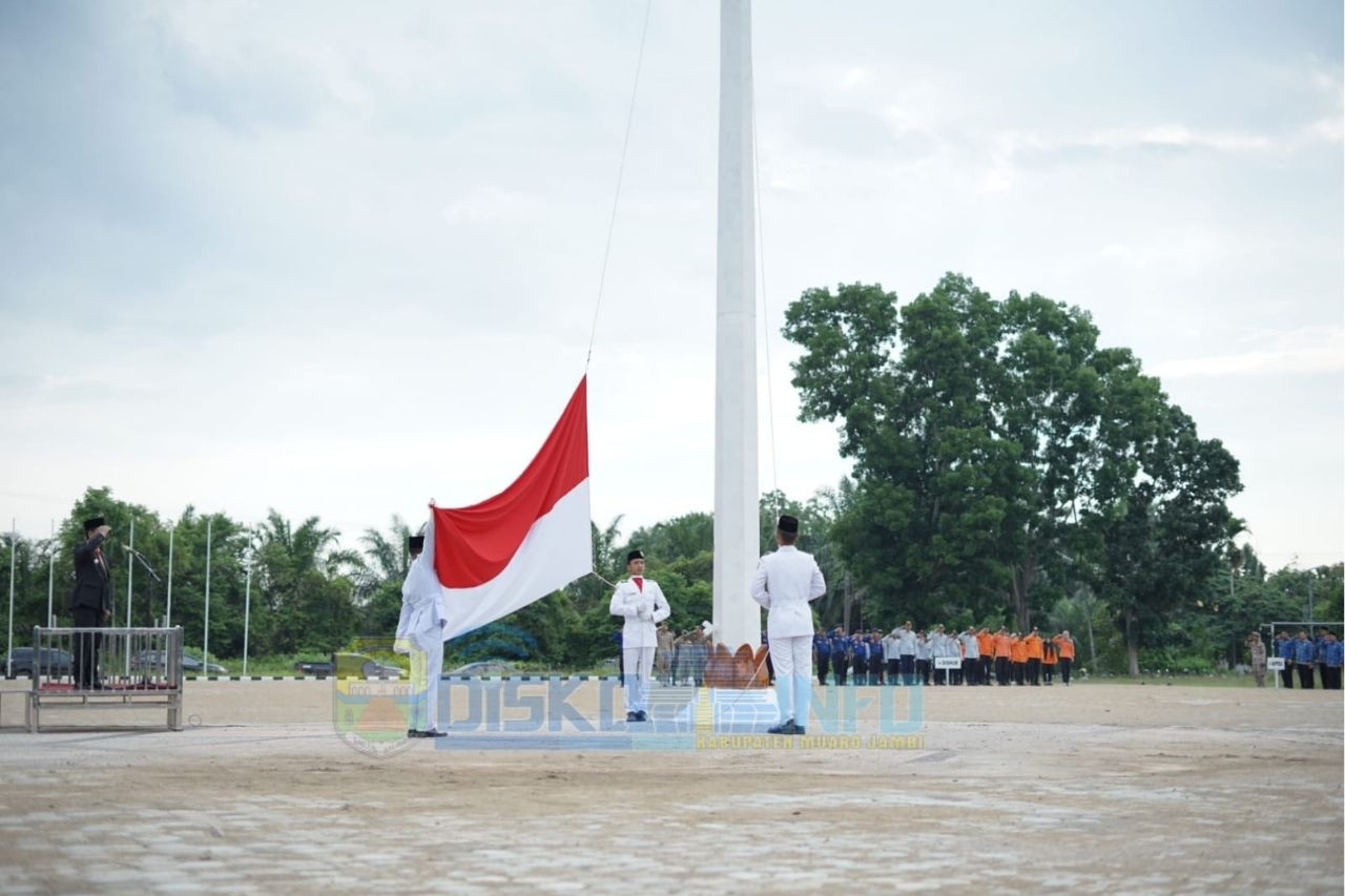 Di hadiri oleh Sekda Kabupaten Muaro Jambi Budhi Hartono S. Sos MT, seluruh kepala OPD, unsur Forkopimda, Kepala Bagian, dan peserta upacara yang hadir dari kalangan pelajar dan instansi terkait penjabat Bupati Kabupaten Muaro Jambi Raden Najmi memimpin kegiatan upacara tersebut dengan penuh khidmat.