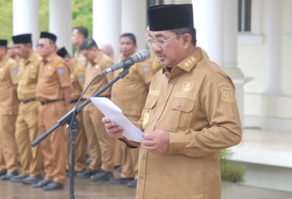Kegiatan ini dilangsungkan di halaman Kantor Bupati, pada Selasa pagi, (8/4/2025) dengan dihadiri oleh Bupati Tanjab Barat Anwar Sadat didampingi Wakil Bupati Katamso, Sekretaris Daerah, para Asisten Setda, Staf Ahli Bupati, Kepala OPD, Kabag, Direktur RSUD, hingga para camat, khususnya Camat Tungkal Ilir.