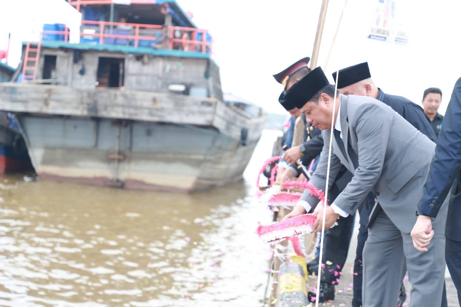 Dengan mengusung tema “Pahlawanku Teladanku, Terus Bergerak Melanjutkan Perjuangan,” upacara berlangsung khidmat dan penuh makna. Rangkaian kegiatan diawali dengan penghormatan kepada arwah para pahlawan, dilanjutkan dengan mengheningkan cipta, prosesi tabur bunga di perairan Sungai Pengabuan, dan diakhiri dengan pembacaan doa.