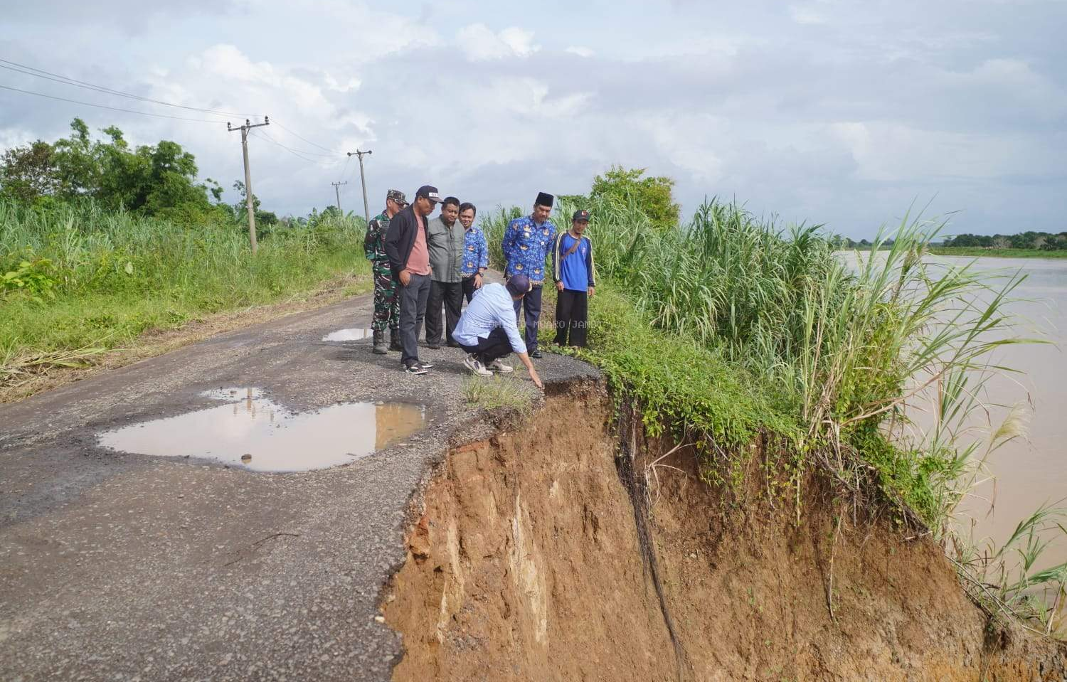 Di dampingi oleh Kadis PUPR Kabupaten Muaro Jambi bpk Yultasmi, Camat Taman Rajo, Kades Desa Dusun Mudo dan beberapa warga sekitar, dalam kesempatan tersebut penjabat Bupati Kabupaten Muaro Jambi Drs. Raden Najmi melihat langsung kondisi jalan yang rusak karena abrasi aliran air sungai batang hari sehingga beberapa bagian jalan tersebut mengalami longsor.
