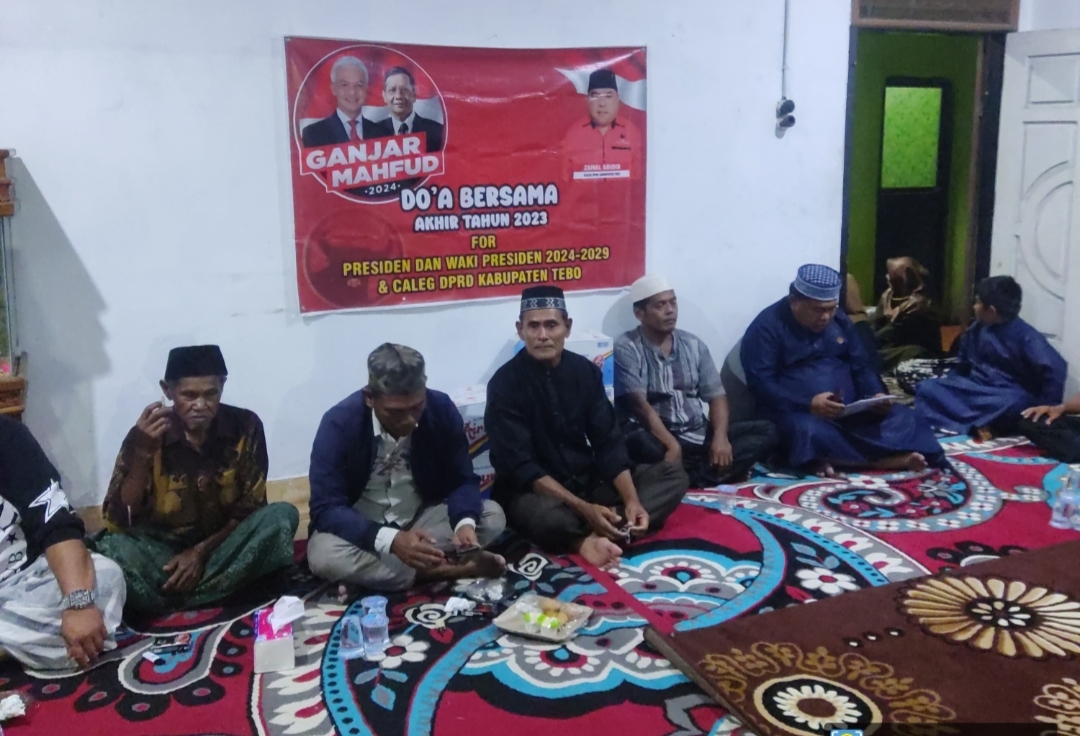 Tebo – Masyarakat Kabupaten Tebo adakan acara Do’a bersama akhir tahun 2023 di kediaman Zainal Abidin di Kelurahan Tebing Tinggi agar Ganjar – Mahfud menang menjadi Presiden dan Wakil Presiden periode 2024 – 2029.