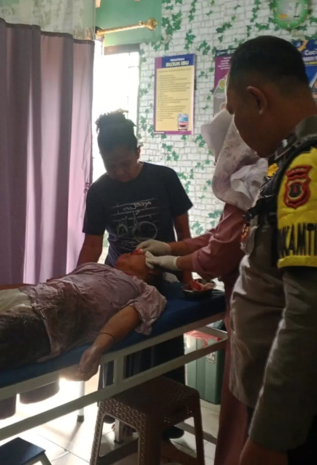 Korban segera dibawa warga ke rumah bidan desa untuk mendapatkan pertolongan pertama, sebelum akhirnya dirujuk ke RSUD Raden Mattaher Jambi karena mengalami luka serius di wajah, sekitar mata kiri, dan paha.