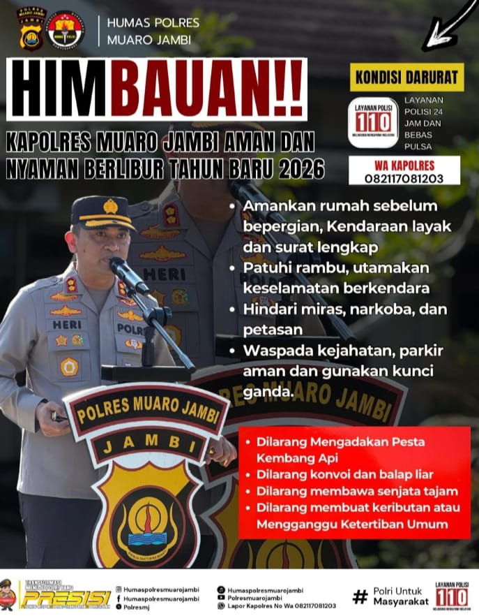 SEKATOJAMBI.COM, JAMBI – Sesuai Instruksi Kepala Kepolisian Republik Indonesia (Kapolri) Jenderal Pol. Drs Listyo Sigit Prabowo Msi mengintruksikan kepada seluruh Kapolda dan jajaran untuk menghimbau kepada masyarakat untuk tidak nyalakan pesta kembang api dan perasan saat malam pergantian tahun 2026, kebijakan ini bersifat nasional dan teknis pengawasan ini diserahkan kepada Kepolisian Daerah.