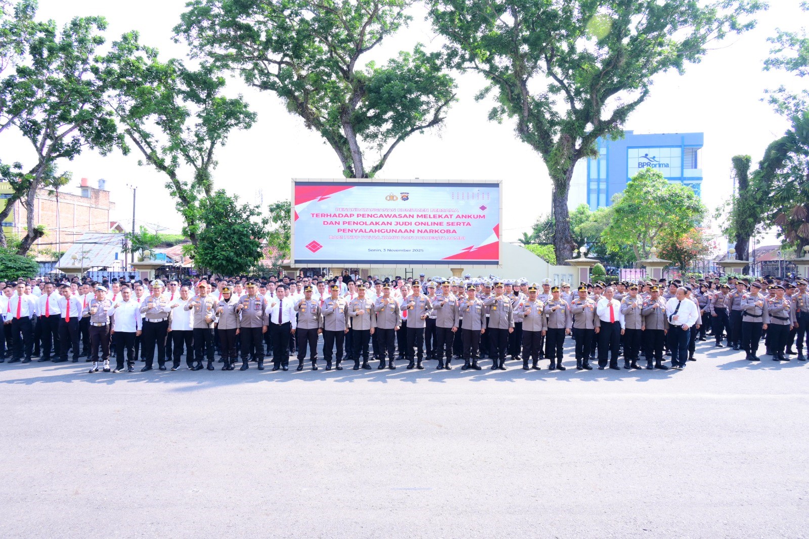 SEKATOJAMBI.COM, JAMBI – Polda Jambi melaksanakan apel pagi sekaligus Penandatanganan Komitmen Bersama terhadap Pengawasan Melekat oleh Pimpinan serta Penolakan Judi Online dan Penyalahgunaan Narkoba bagi seluruh Personel Polri (PNPP) Polda Jambi dan Jajaran, pada Senin (03/11/2025)