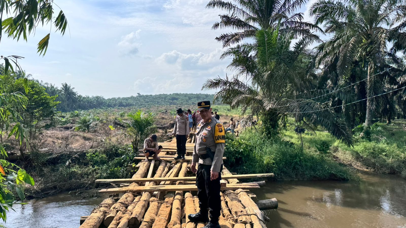 Polres Muaro Jambi Melalui Polsek Sekernan Bersama Sat Brimob Polda Jambi dan Masyarakat Desa Tanjung Lanjut Melaksanakan Renovasi Jembatan Kayu