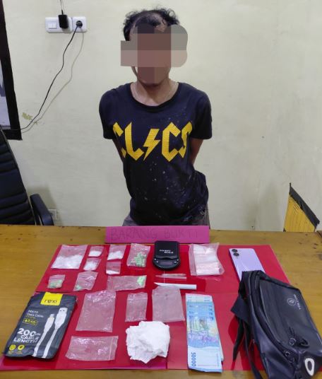 Dari hasil penggeledahan, polisi menyita barang bukti berupa sabu seberat bruto 19,18 gram, ekstasi seberat bruto 15,50 gram (puluhan butir), timbangan digital, alat hisap, plastik klip, uang tunai hasil dugaan transaksi, serta satu unit handphone. Seluruh barang bukti ditemukan dalam tas selempang milik pelaku di sekitar lokasi.